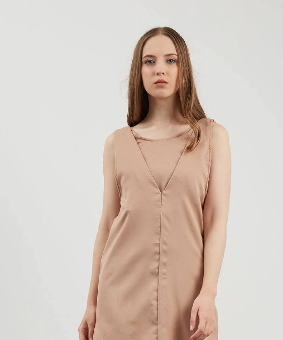 Dress tanpa lengan dengan model yang simpel memiliki detil kerah v neck. padu padankan dengan heels dan clutch bag untuk melengkapi penampilan kamu.